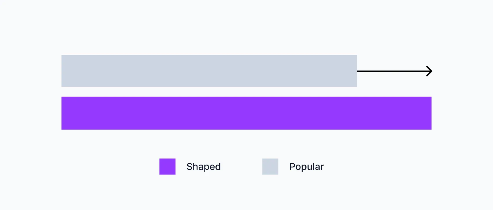 Fixing the feed had been top of mind for Alter for several months. However, after scoping out the cost of building and maintaining their own in-house ranking infrastructure, it became clear that it was a more significant time and cost investment than originally thought. With the resources available Alter had a decision between building out multiple areas of the app that would differentiate itself from competitors to win the market or almost exclusively focus on improving their feed. Ultimately, they decided to partner with Shaped because they were attracted by the prospect of deploying ‘TikTok like’ real-time personalization in days, the team’s subject matter expertise, and the low maintenance required.